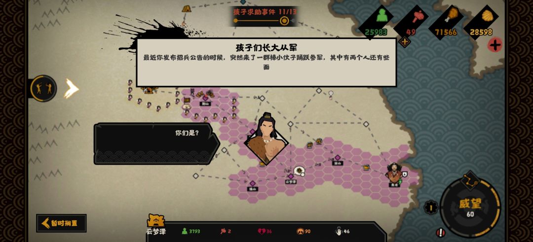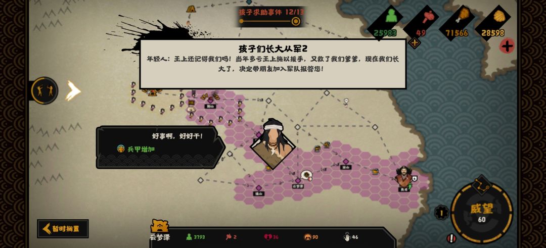 选择帮助二子时,后续低概率触发他们来参军事件解锁成就(二选一)