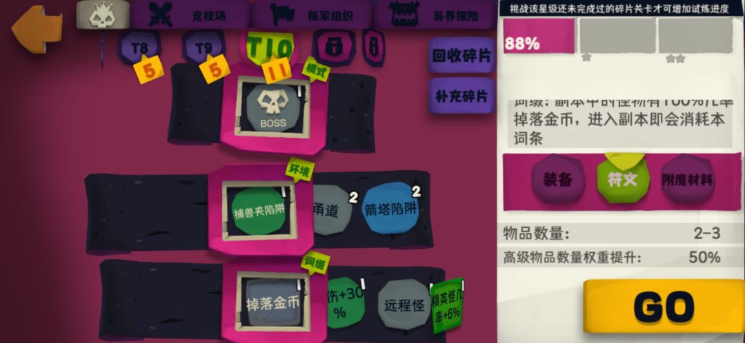 2、最大化血爆悬浮的资源。在堆角色属性之前,首先要利用已有的炸猪流去攒足够多的资源,主要包括装备的熔炼,幽灵的初步搭配。由于炸猪流已经非常成熟,能够刷各种副本,因此要利用这些副本的资源尽快让第1步中挑出来的装备成型。每天刷够10次491-500层,词条选择如下: