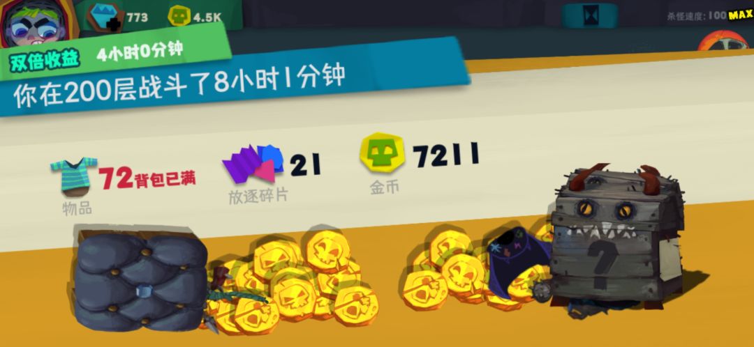 收益成果非常丰富,一晚上可拿到70多件装备还有一堆碎片。这些装备非常关键!如果你不是欧皇,经常洗不到想要的词条,那就让系统给你想要的词条!只要这些装备能有一两个是目标词条,那就赚大了。我的血爆头和悬浮刃都是洗了半天洗不出来词条,挂机爆装备免费送的好词条。