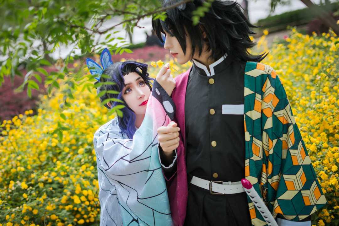 今天给大家分享的Cosplay作品cos的原型是来自漫画·动漫《鬼灭之刃》中的蝴蝶忍×富冈义勇形象