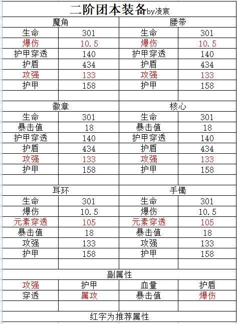 上图为凌宸大佬做的二阶星界外装属性图,按需查阅即可