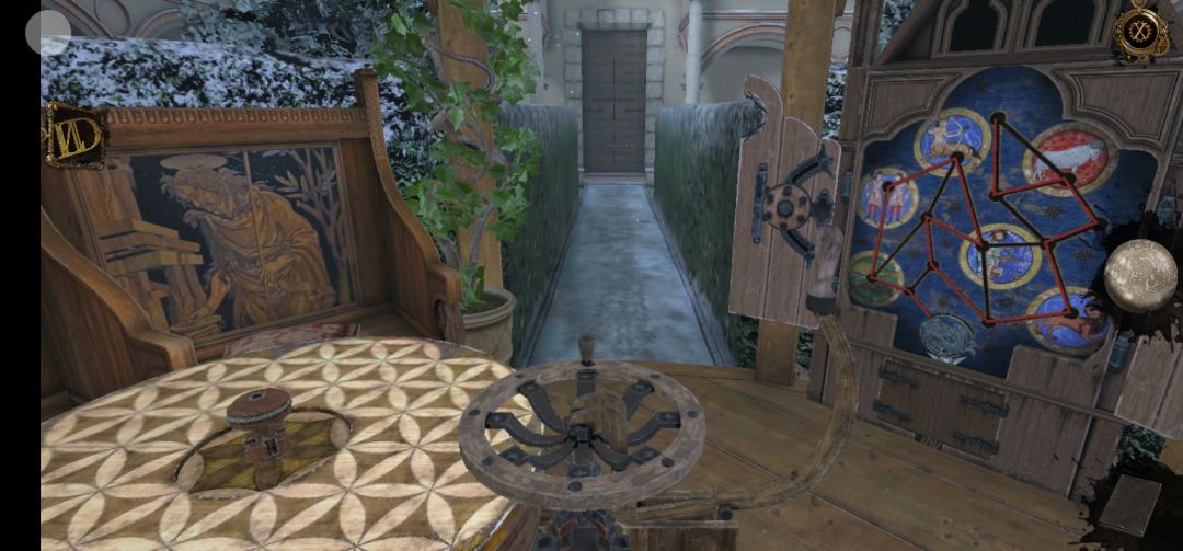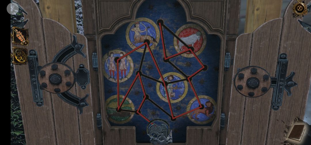 打开机关后,按照连接星座顺序解开圆桌上的机关