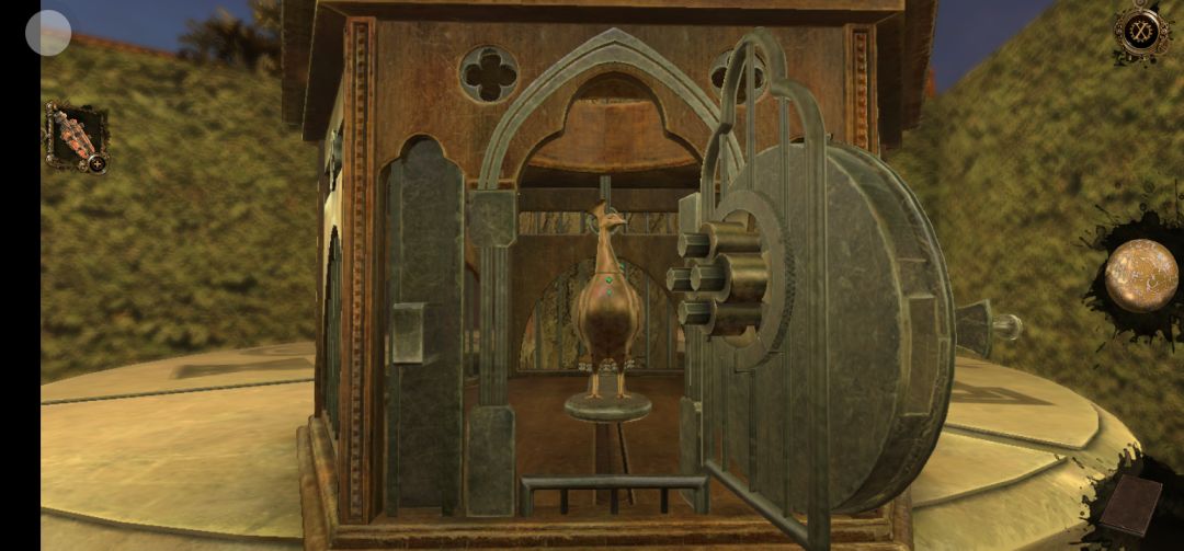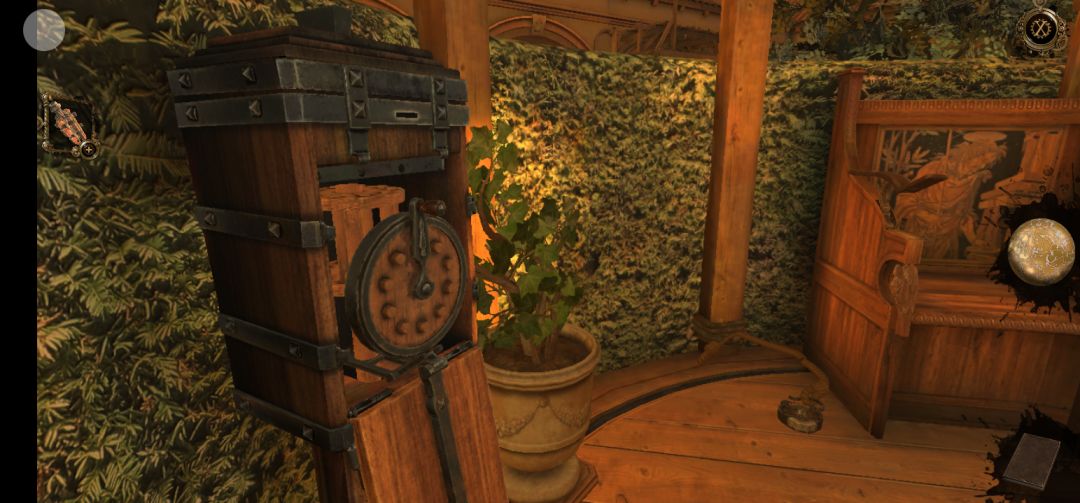 回到凉亭,将凤凰尾翎放置在花盆下的齿轮上,旋转齿轮即可