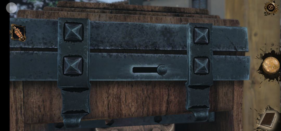再将木箱上的圆盘调好,对应插入钥匙,木箱盖子弹开