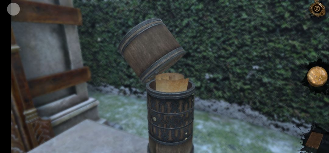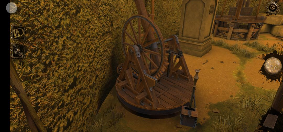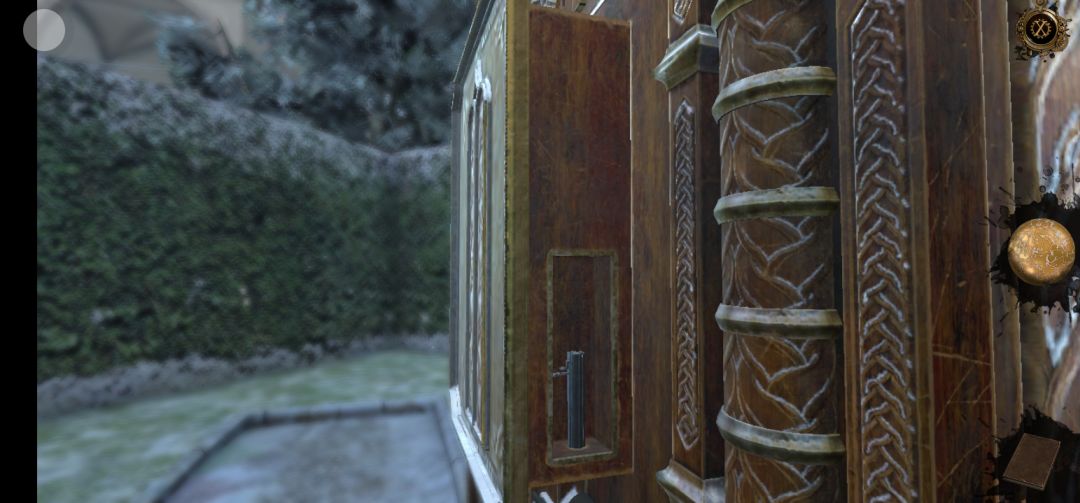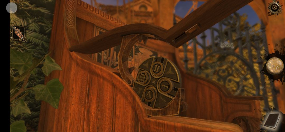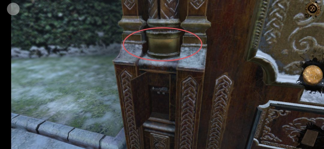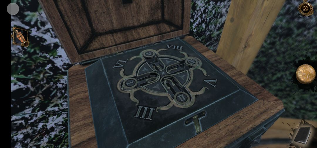回到现在,将画面左转,拖拽左侧机关上方的金属旋钮,再将罗马数盘放置在上面