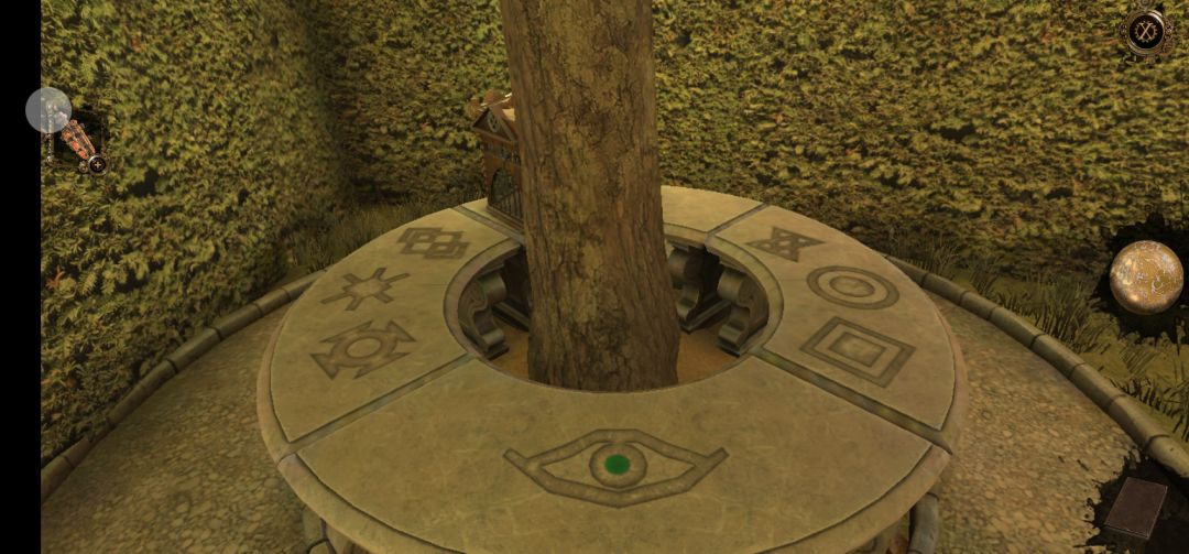 调好后门会上锁,再对应石椅上的提示调好指针(这里注意对门眼睛的视角)