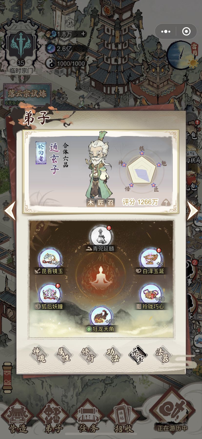 通玄子(炼丹活动必备 10酒2花大弟子(清明节炼花专属活动奇效的名称 能抗能打能输出 法术攻击 木灵根)