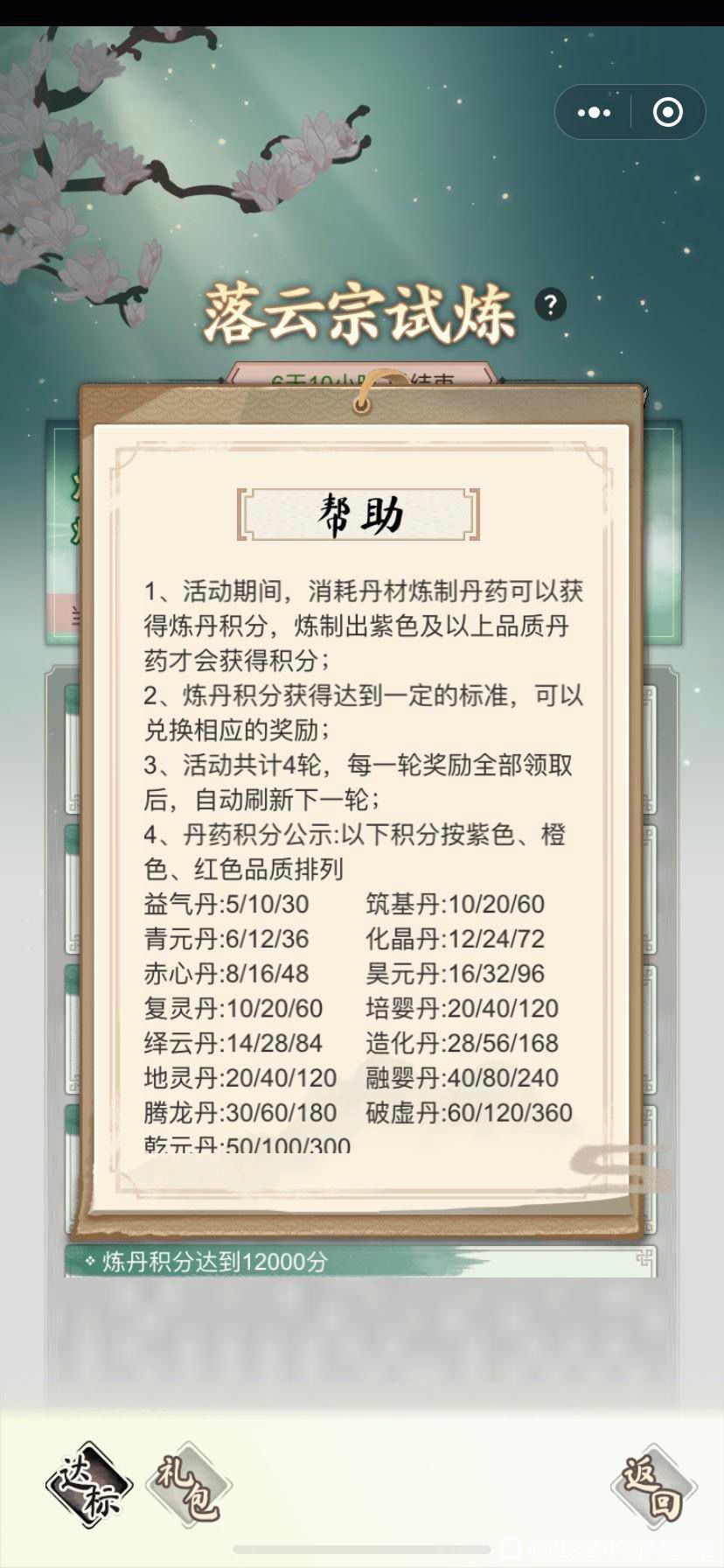 4、丹药积分公示:以下积分按紫色、橙色、红色品质排列