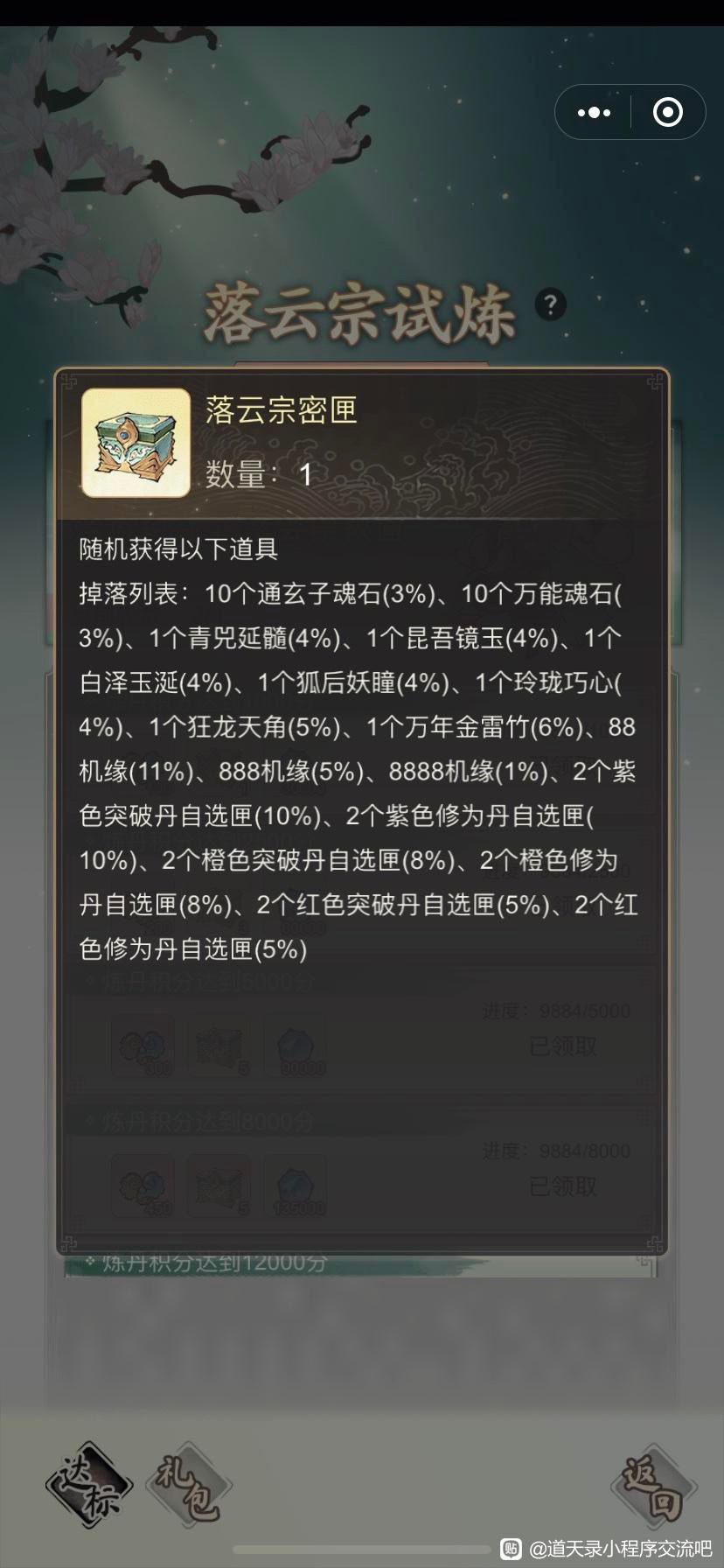 2、炼丹积分获得达到一定的标准,可以兑换相应的奖励;