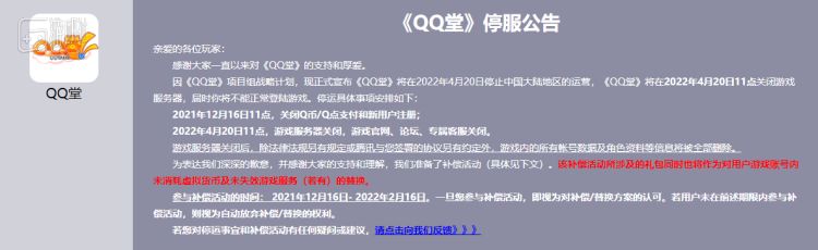 4月20日11点起,《QQ堂》游戏服务器就要关闭了,连带着关闭的还有它的官网、论坛和专属客服。