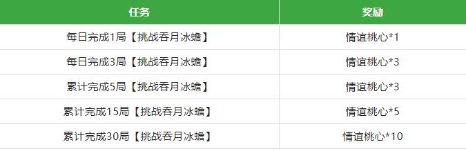 本次大家需要挑战的地图是挑战吞月冰蟾,大家可以在【单人匹配】-【特殊关卡】中找到该地图,击败吞月冰蟾,完成指定任务就可以获得情谊桃心。