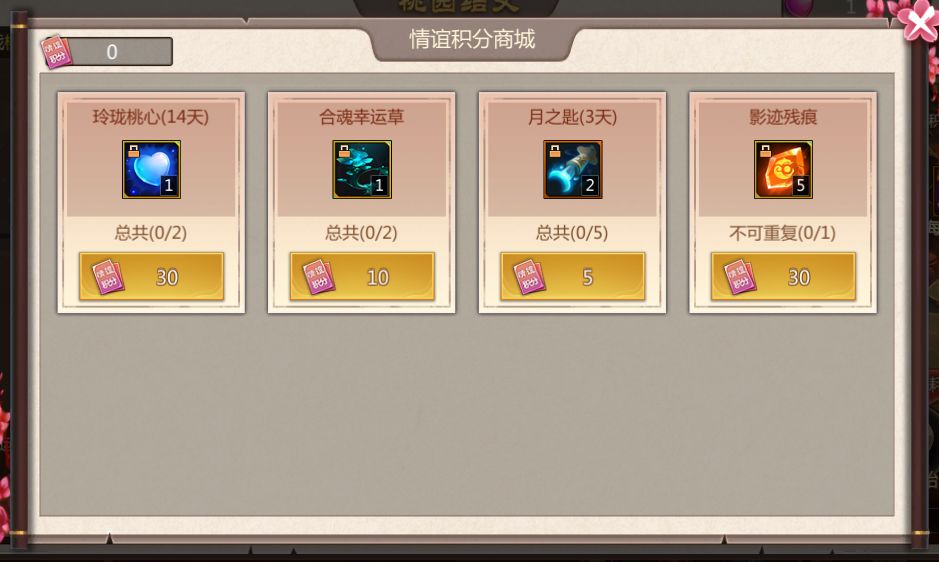 情谊积分可用在来积分商城中兑换道具,积分商城在活动界面中可以直接进入。 活动期间,情谊桃心也会在商城中同步上架,售价20梦三币1个。 在此次积分商城中,大家除了可以使用情谊积分兑换玲珑桃心、合魂幸运草、月之匙和影迹残痕哦~