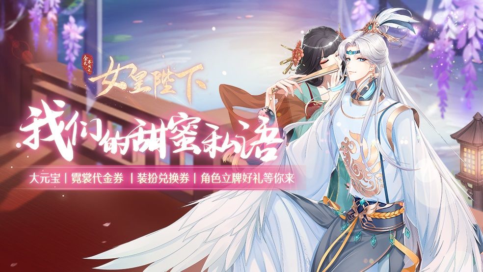 甜蜜礼包:元宝*588,霓裳代金券*5,装扮兑换券*40