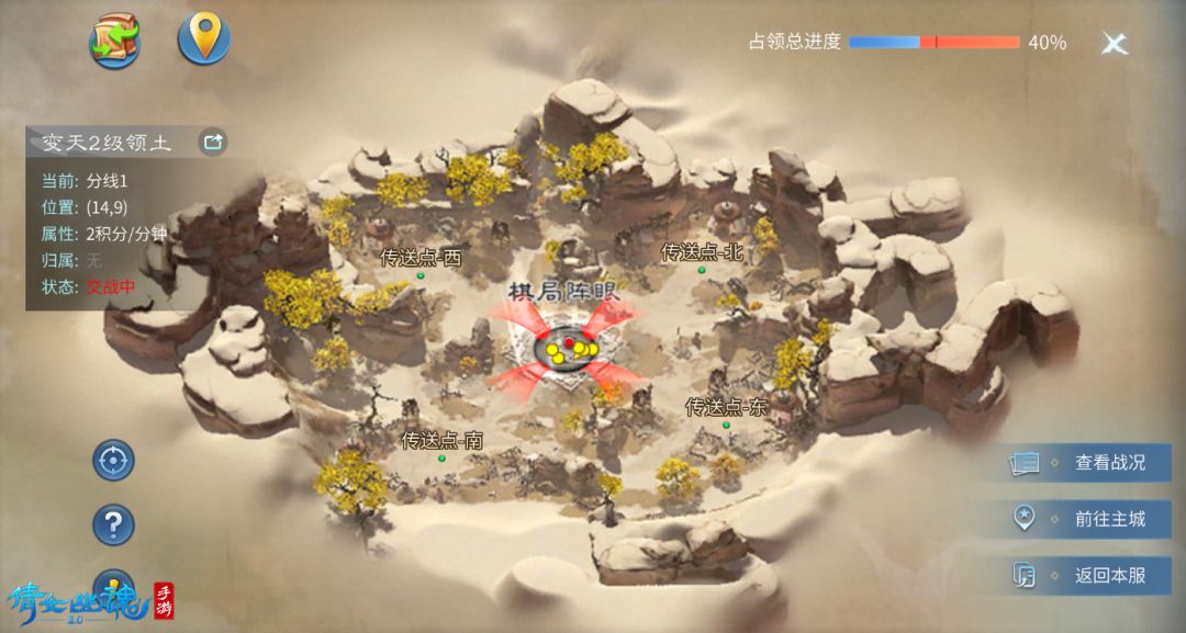 天地棋局是全新的多帮会混战占点PVP玩法,八个实力相近的帮会将进入新战场地图,以天地为棋盘开疆拓土,一步步占据土地扩大势力范围,直至赢得“钧天”中心城的主权!
