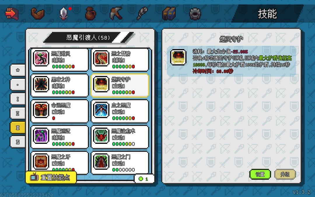 燃灵守护(提供高额护盾,前期保命的技能,推荐优先点一点,达到站撸)