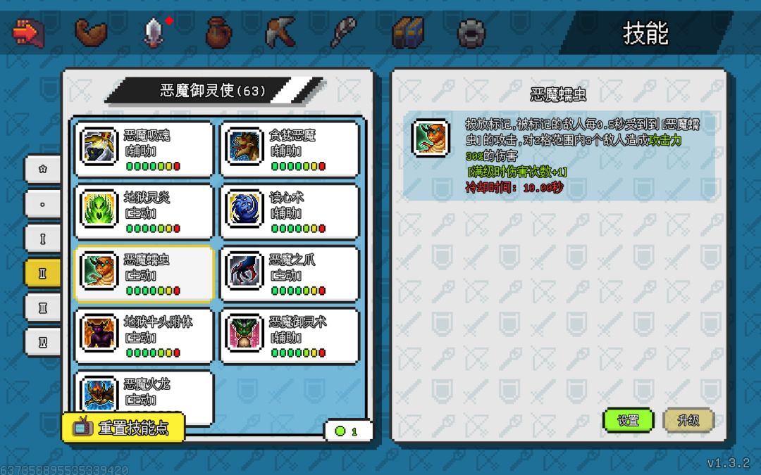 恶魔蠕虫(多段伤害打青影史莱姆用,前期可以点一点来快速清怪)