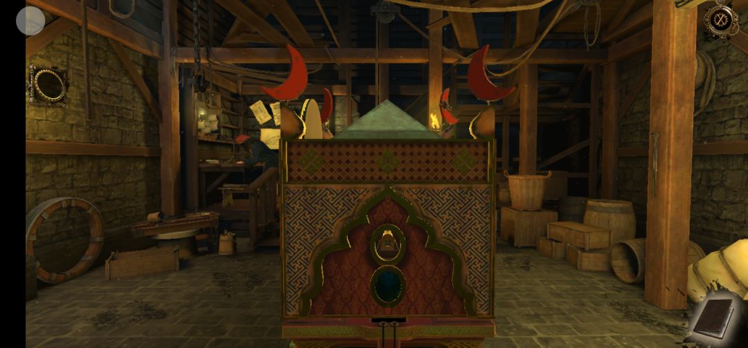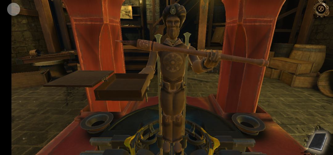 下一层机关开启,拖拽木偶左侧的把手,再打开木偶手中的盒子,得到射手座圆片