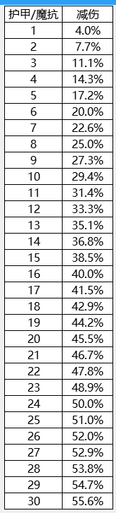 可以得出换算公式:减伤率=x/(x+24),其中x是抗性数值。24是一个节点,代表一半的减伤。