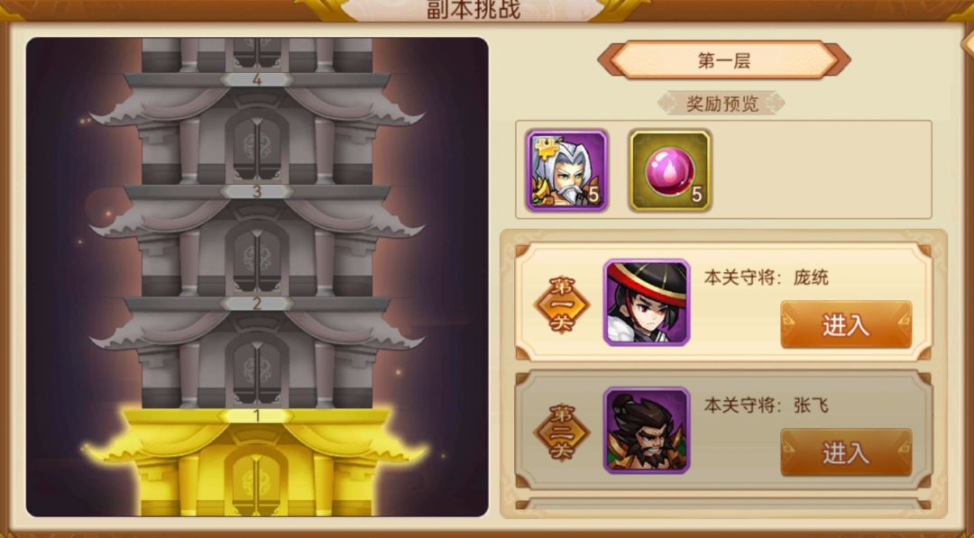 在每层塔的关卡均由蜀国精兵强将把守,挑战成功即可获得通关奖励。同时,完成相应的任务,还可获得蜀国提供的丰厚奖励哦!