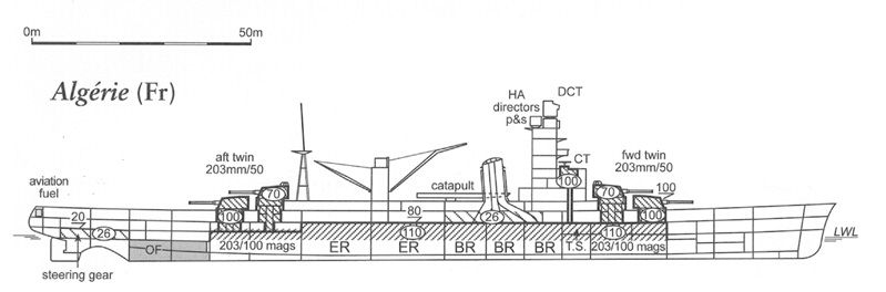 上图:条约巡洋舰的经典设计:法国的阿尔及尔号