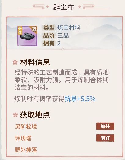 △辟尘布(苏湘容可得之物以游戏内为准)