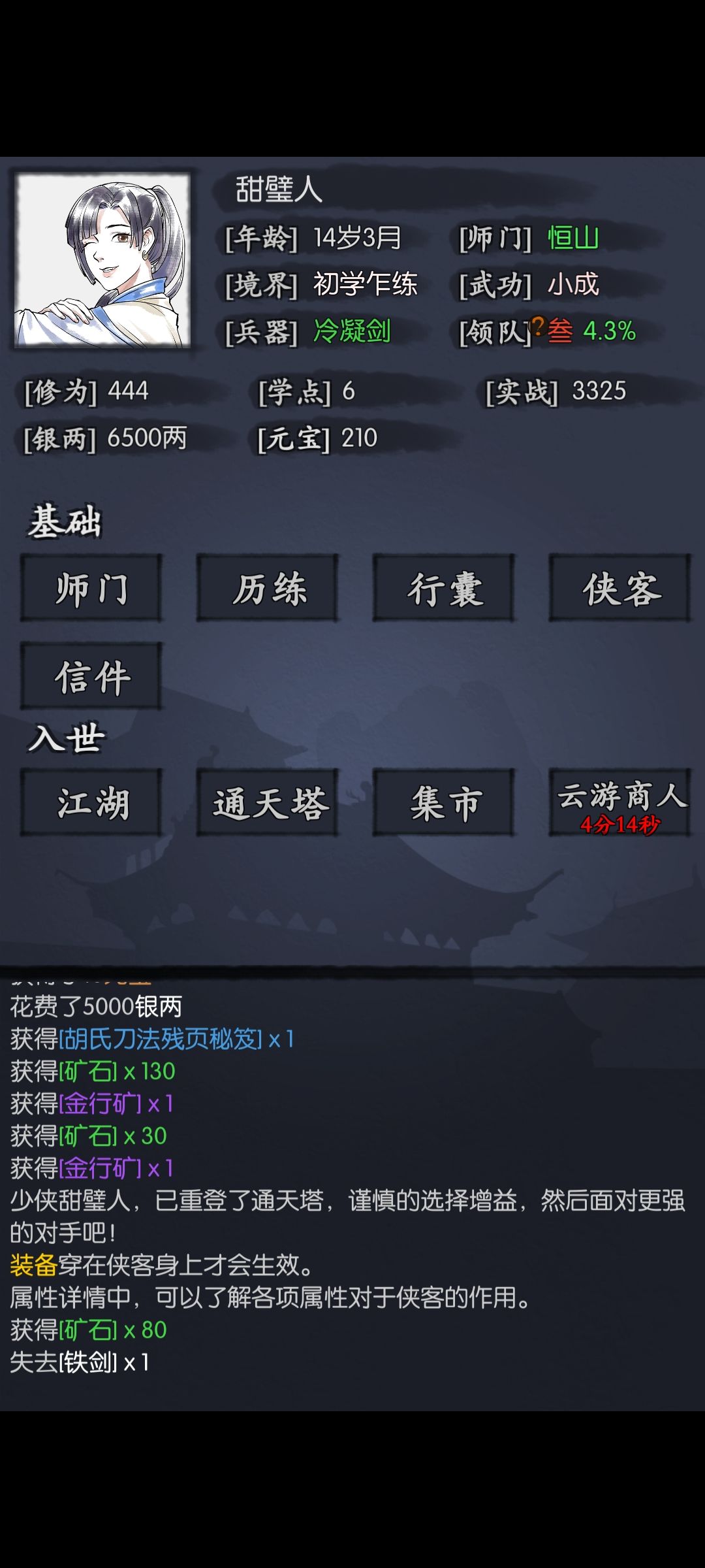 游戏挺好,让我有几年前玩《放置江湖》(虽然后来垃圾了)感觉。界面简约美观,操作简单明了,门派里各种武功区别也明显。