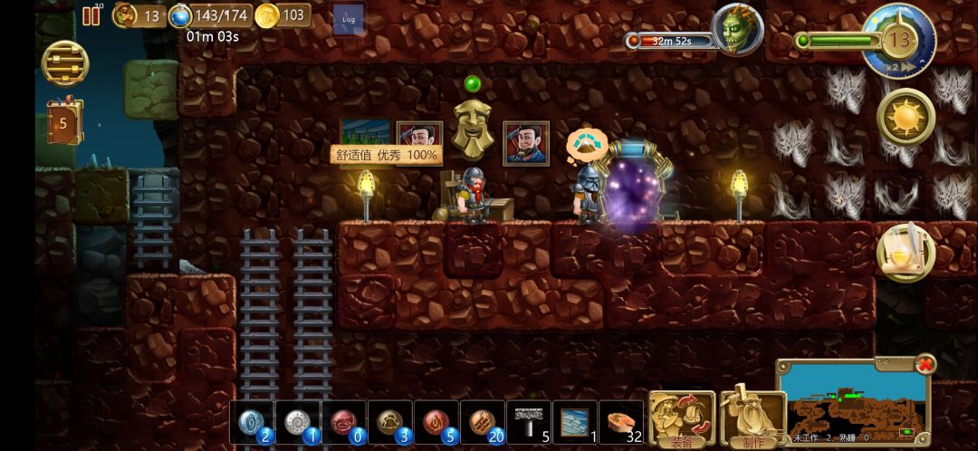 我都没安门,舒服值以直接100,我就放了个仓库和图腾,后面几幅画是后面添上去,如果房子被破坏,会减少舒服值,后面可以回起来的,那里是我龙场。