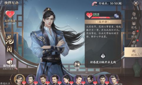 3.伙伴交往:点击交往选项,点击互动,选择有别传任务的伙伴进行好感度培养,好感度提升到10级后会开启别传任务,完成任务打开宝箱,将获得5W经验。