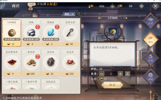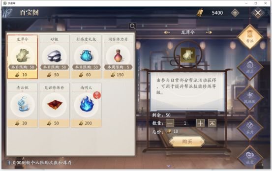 注意:魄石精可以用铜币买,离火可以用帮贡买。
