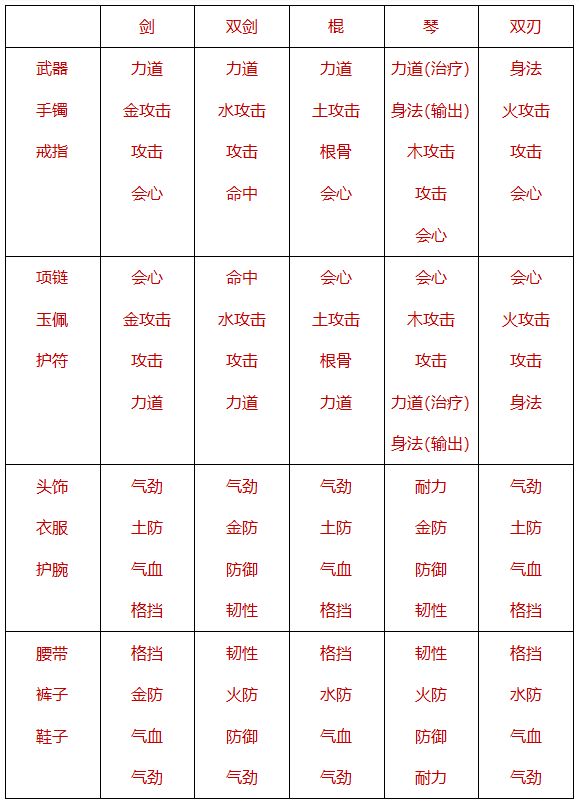 以下为职业招式等级属性加成,大家根据需要来调整宝石内容: