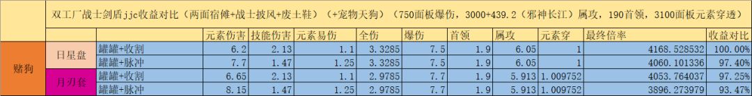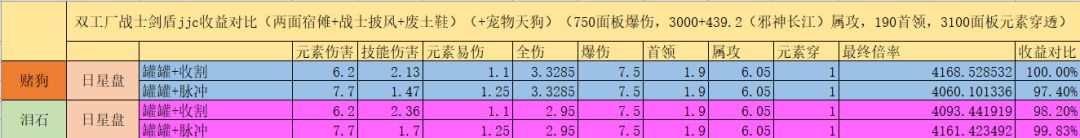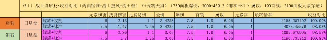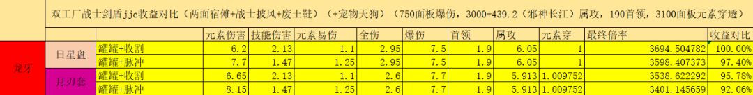 所以,以750面板爆伤,3000面板属攻,3100元素穿的面板为例:选择狼日星盘+机械臂+收割者+龙牙+战士披风+火神,是目前版本剑盾战士打桩伤害最大化的配置。