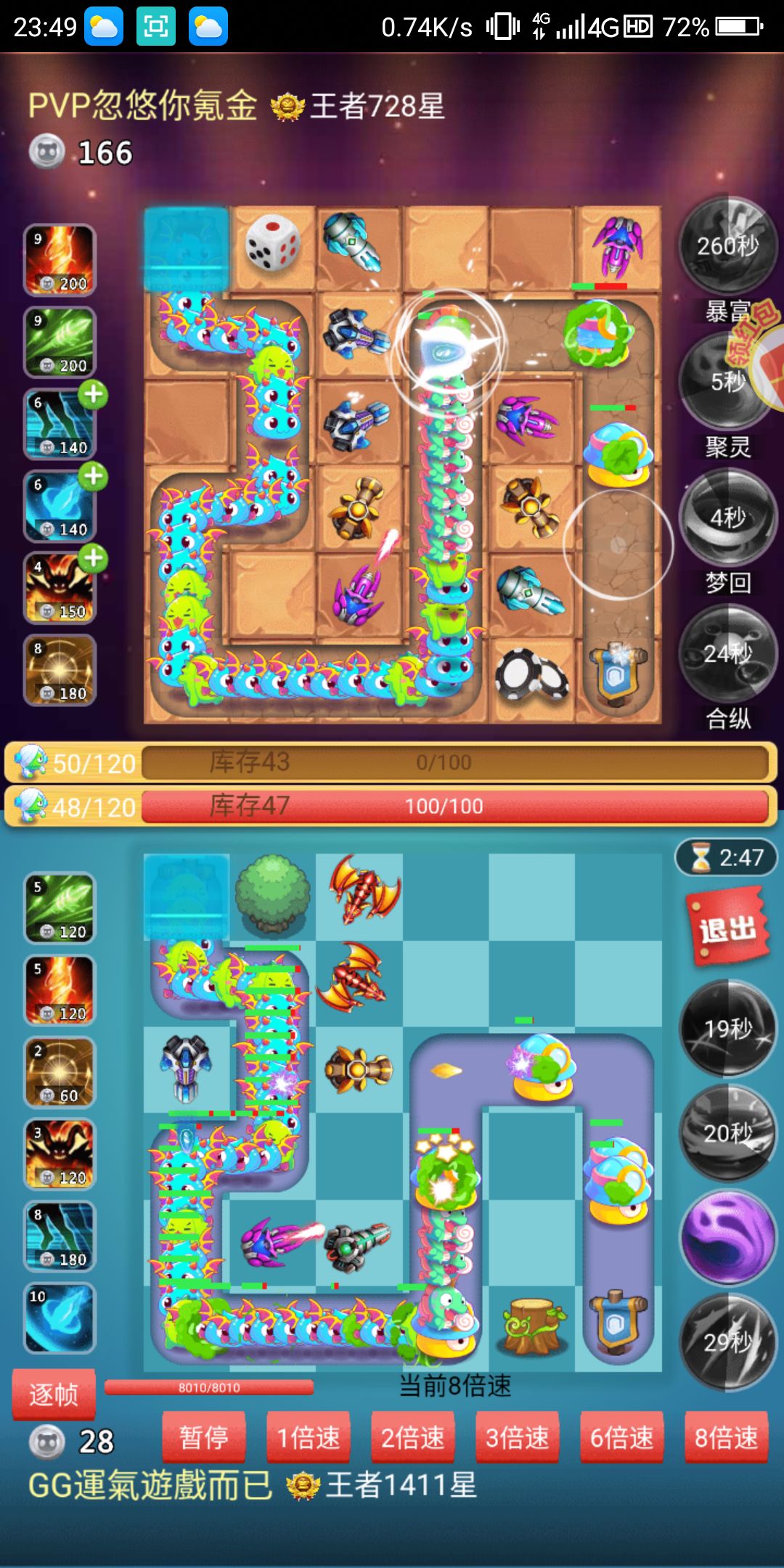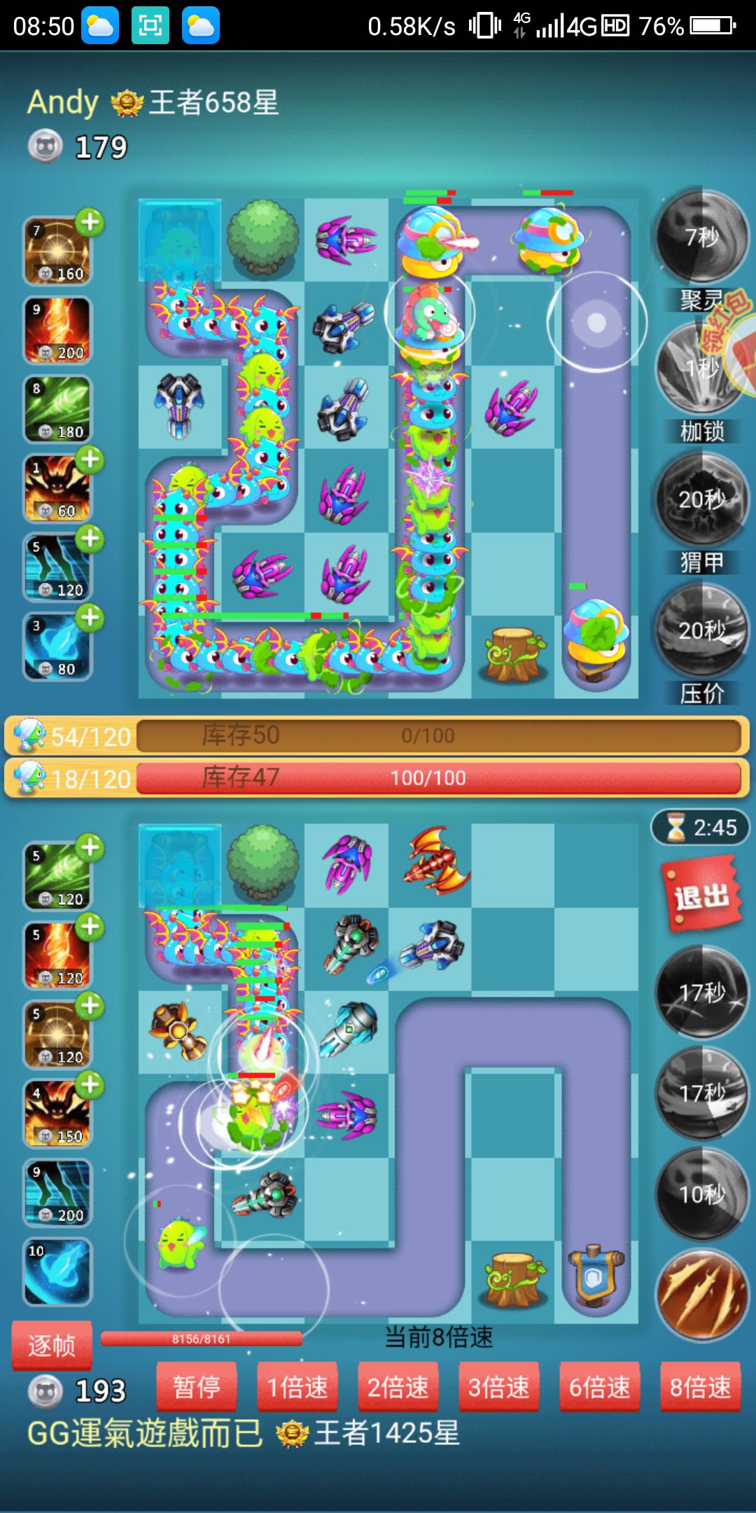1、对炮摆位,aoe炮最好是放在卡出怪口的位置,拐角口要么放定海要么放单体炮。(可参考下图,只是例图,并无恶意)