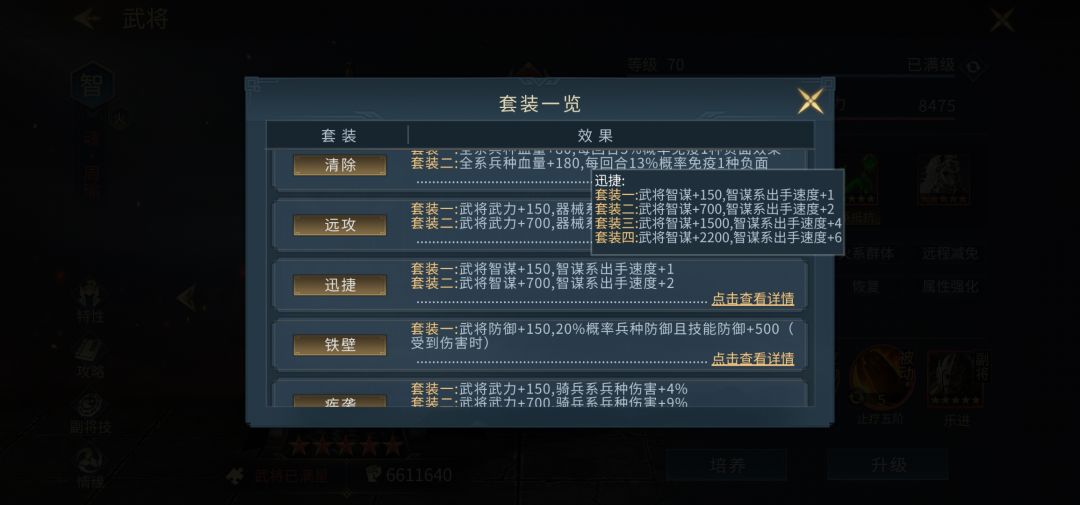 套装第二选择则是迅捷,增加的高额智力和出手,也能极大加强张春华的综合能力,前期没条件的,可以智力加防御套装混合使用,毕竟洗练概率感人,十几天的存货可能不够洗出一条适合的属性,能用也可以先用,后期再调整。