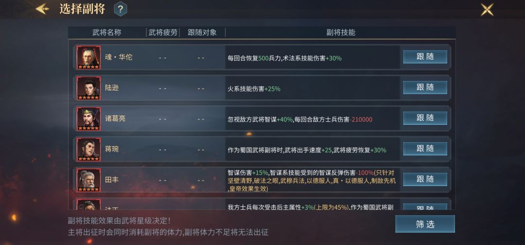 张春华的副将选择,经过一大区的不停实战,得出了几个比较不错的选择,这边为大家一一推荐。