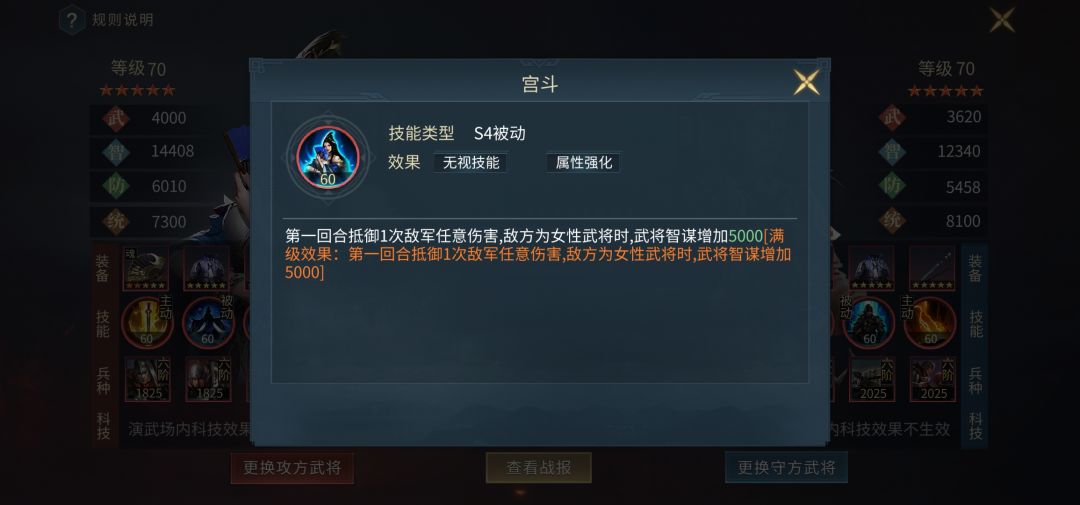 3、甘宁——张春华带甘宁就转换了这个将的思路,将其培养成为专门打武力将的利器,甘宁先免疫远程器械伤害,再免疫敌方的加速减速技能,这样给了张春华先出手的机会,秒杀武力将将在一两个回合完成,对于头疼武力将的玩家,也是个不错的选择。