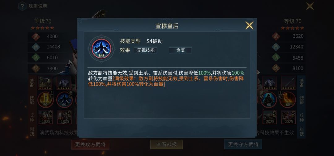 张春华:雷系智谋系群攻武将,被动免疫土系、雷系智谋系伤害,并能转换为自身回血,克制目前大多数主流智力将,第三被动使敌方副将无效,更加强了张春华的综合能力,遇到女性武将智谋增加5000,被男性武将致死还能扣除敌方3500兵力,堪称男女通杀,十星特性击杀方阵回血,是各方面性价比超高的武将,值得入手。
