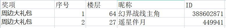 4. 每个ID最多限获得一个奖品,使用楼层数进行抽奖,不同中奖楼层数对应同一ID的,只发放一个奖品,其他奖品将直接顺延至下一个不同的ID;抽奖结果ID不符合活动参与要求的,奖品将直接顺延至下一个符合要求的且未中奖的ID。