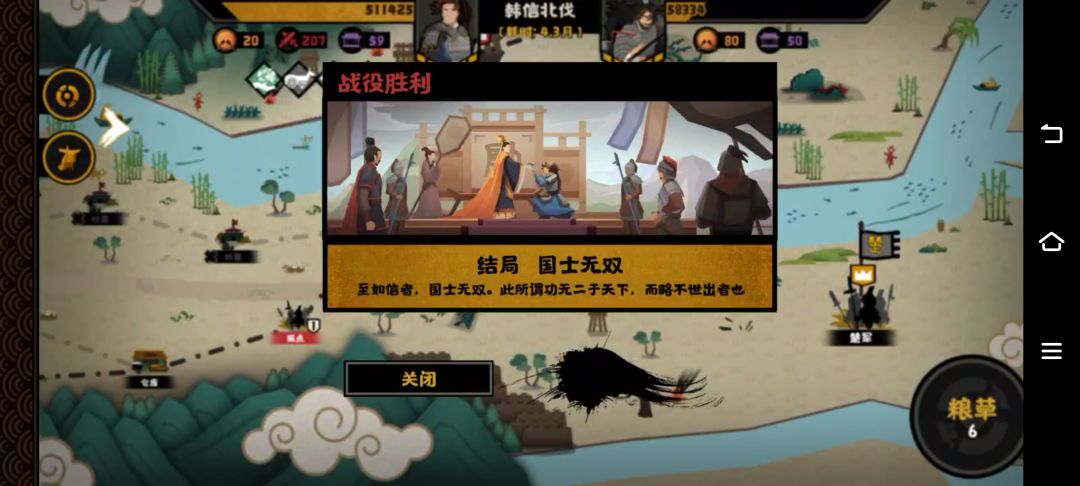 这一次除了兵力被打完的坏结局以外,又加了刘邦的状态值设定,每当玩家攻下一座城就会消耗刘邦一点状态值。而当你干碎一个诸侯国时,触发事件要么韩信得兵力,要么全部送给刘邦回他三点状态。
