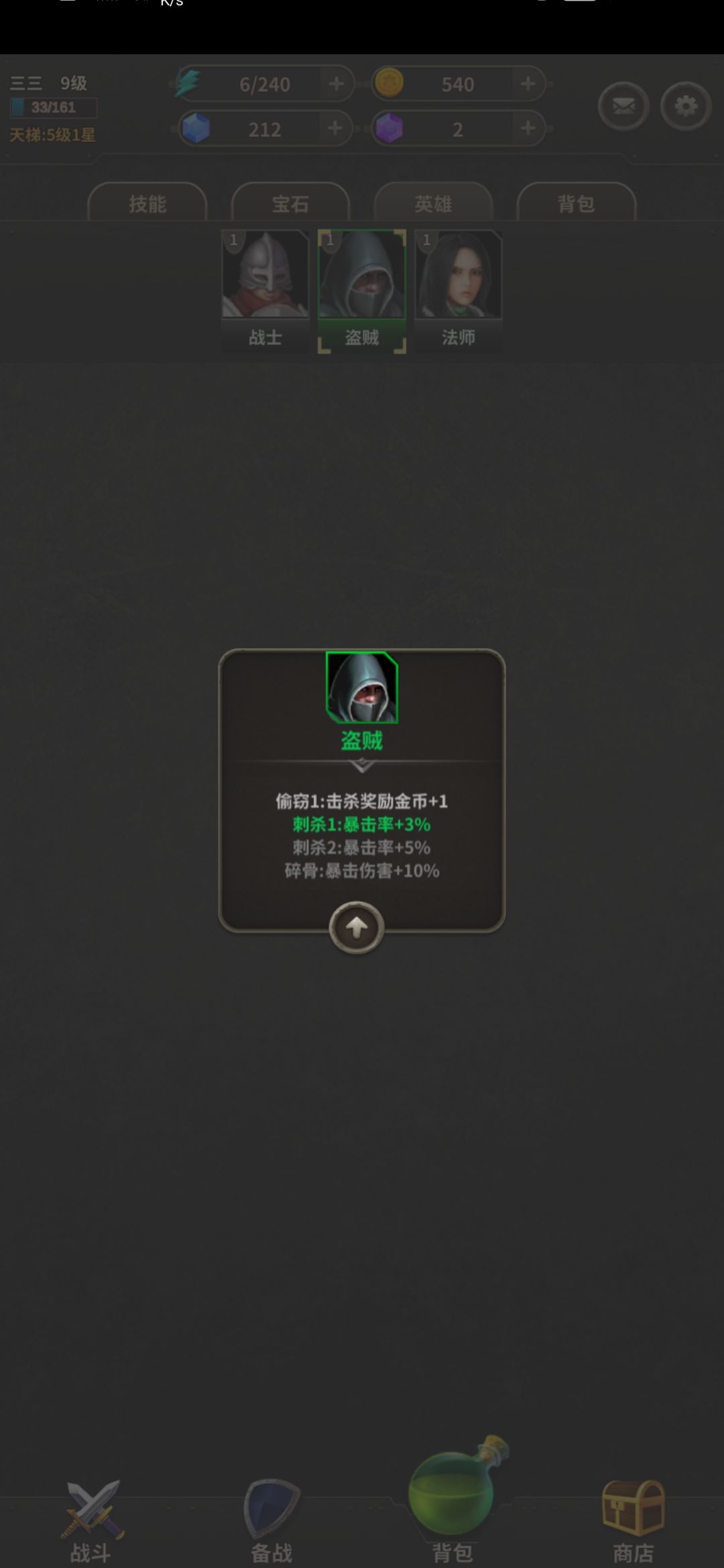 盗贼 现在我一直玩的角色 主要是加金币装备成型快 能打能抗