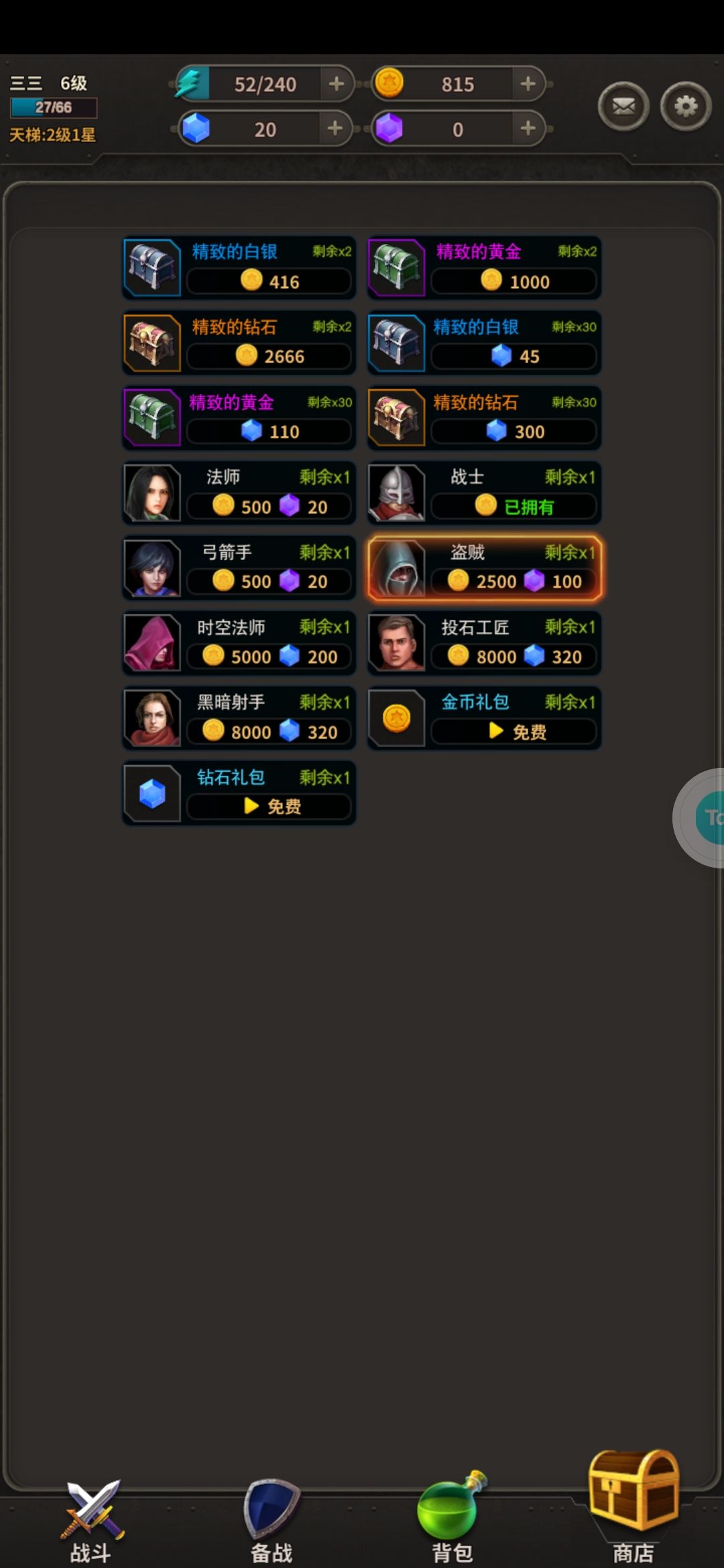 这里我推荐战士 这角色最适合新手游玩体验好 前期出就攻击 中后期看抗不住了出防御和吸血