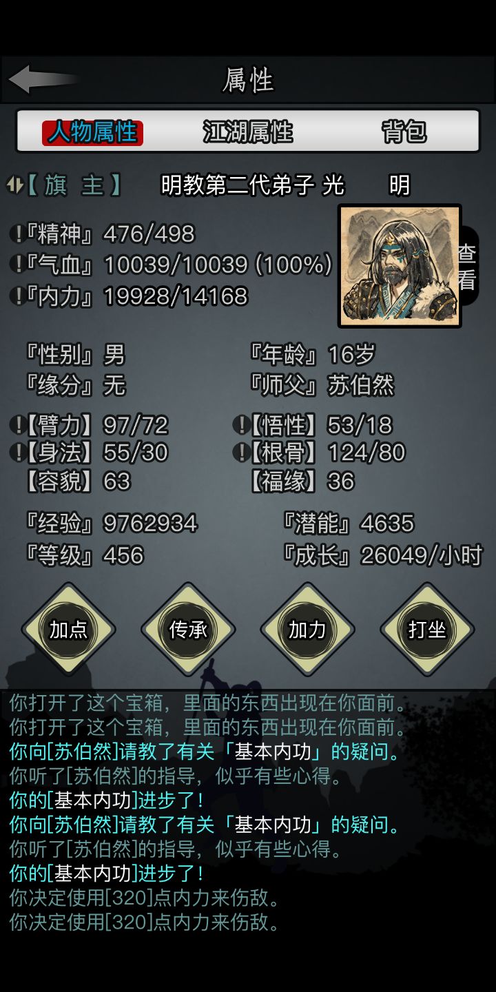 16岁1万血,明教不愧是肉牛,这还不是九阳,换九阳的话,差不多还能多两三千,经脉一点都没有加,明教NB