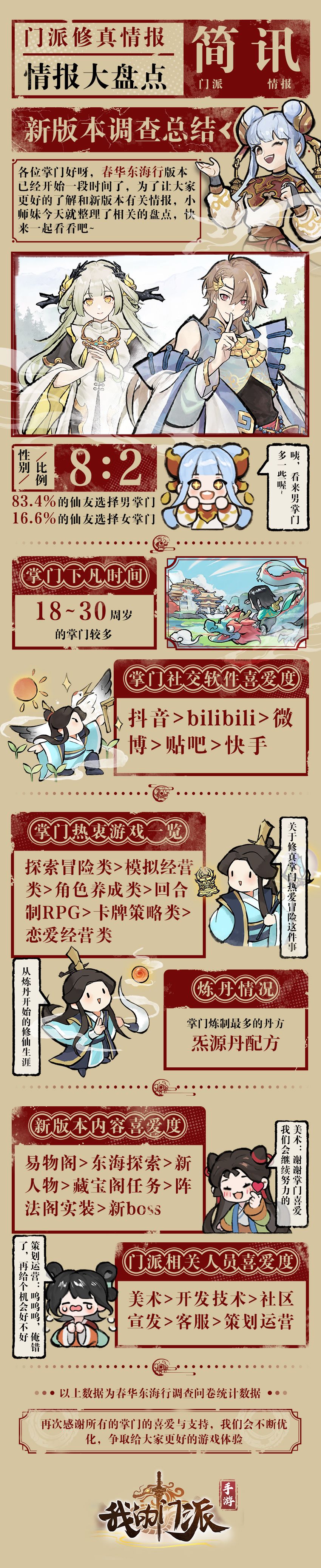 门派简讯|新版本调查总结,仙友喜爱度最高的是?