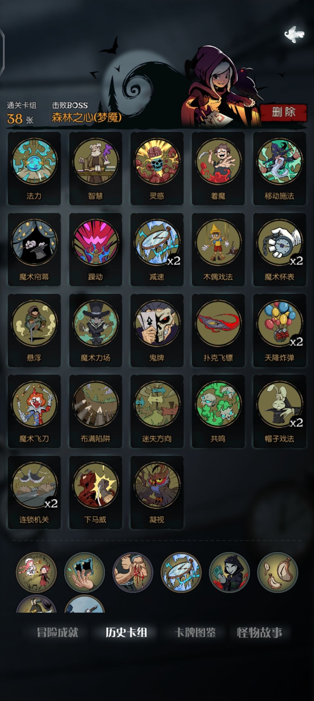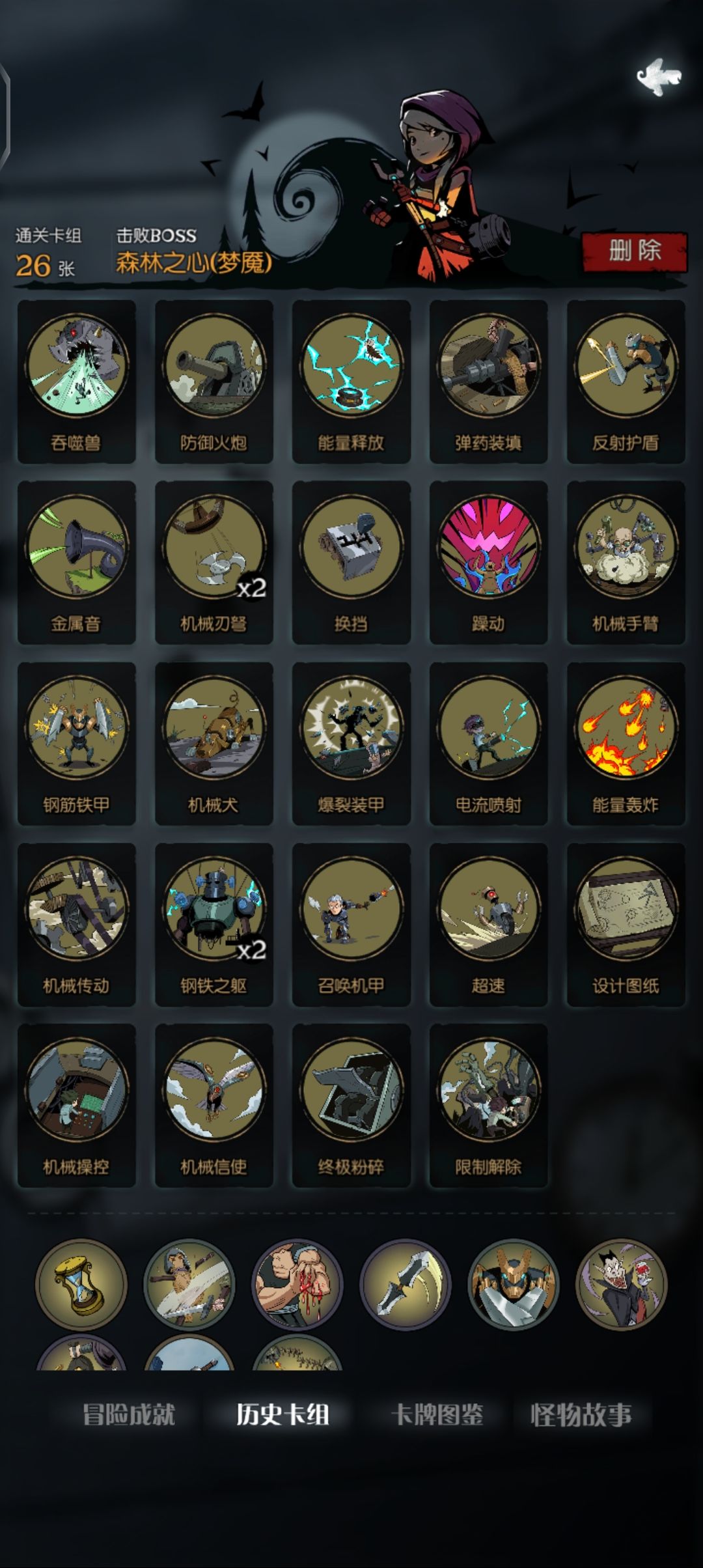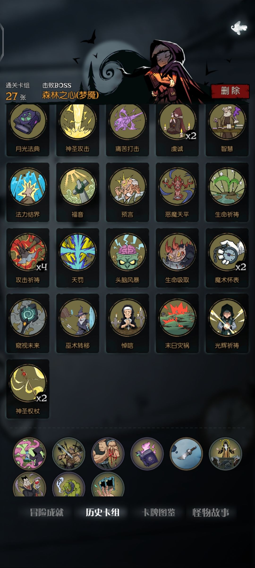 之前打了全成就就退游了,这几天又下载回来,看到多了几个成就和新难度,就试了试,成就没啥难度,各角色的梦魇难度还是很有意思的,下面就放一下我打梦魇用的牌,都是些比较轻松过的牌组。可供参考