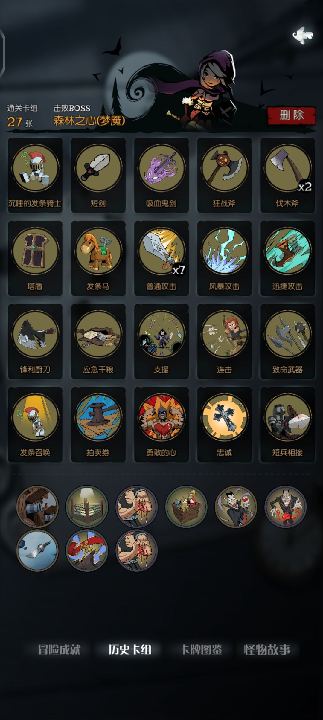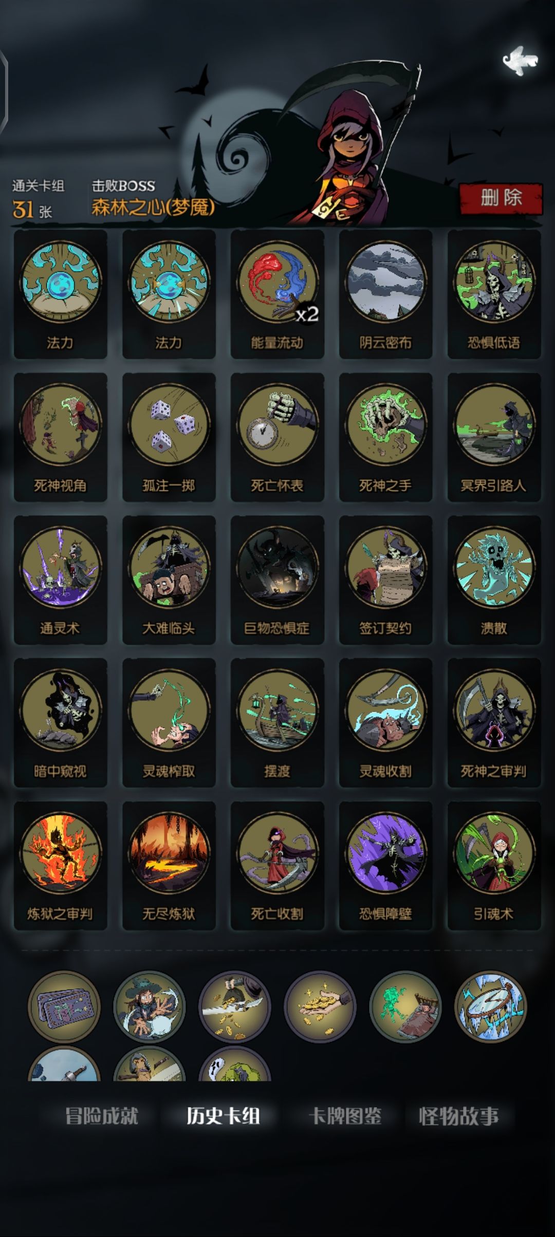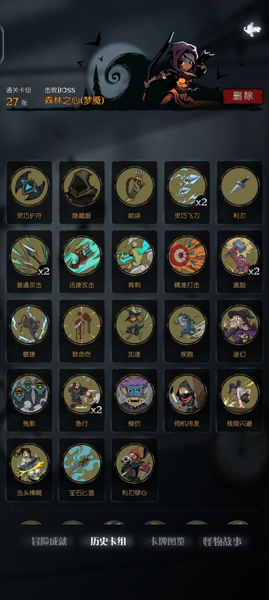 之前打了全成就就退游了,这几天又下载回来,看到多了几个成就和新难度,就试了试,成就没啥难度,各角色的梦魇难度还是很有意思的,下面就放一下我打梦魇用的牌,都是些比较轻松过的牌组。可供参考