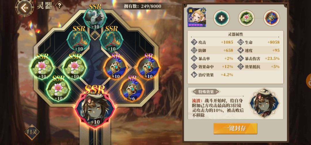 这层也是又臭又长的一关,爬塔最烦的就是这种一堆奶啊盾啊,打起来贼慢。我把青鸟的灵器换回了速度,带了流波。这层抗住伤害先杀魃再杀常曦,魃的普攻还是有点痛的,输出顶不住的话就多拉几次魃给盾,问题不大