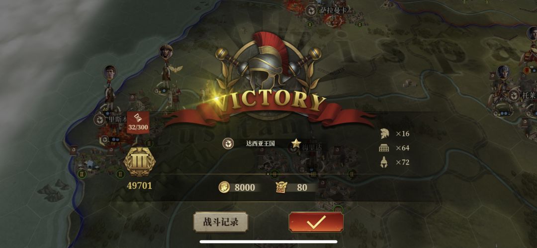 第一次打新图,以为要把祭坛推了才能灭国,规划路线出现错误,汉尼拔打右上了,实际左侧难推。30回合内是可以做到的。(打分,选的困难难度,选简单速度会更快,分低就不讨论了)