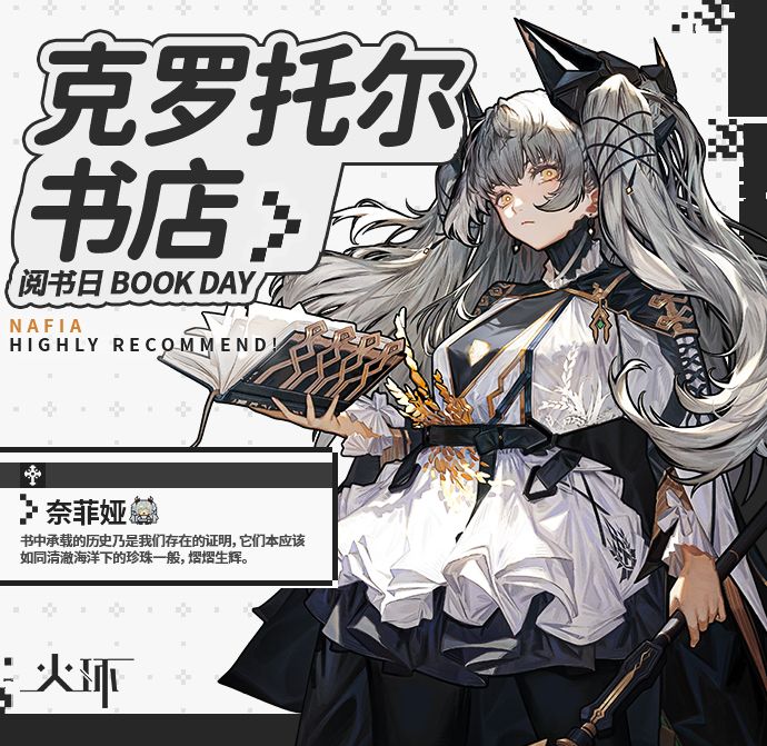 奈菲娅:“热烈祝贺克罗托尔书店第一百一十三次阅书日。在这个值得庆祝的日子,让我们有请店长汉斯·阁那先生为大家介绍一下店内的优秀书籍,希望能对大家有所帮助。”