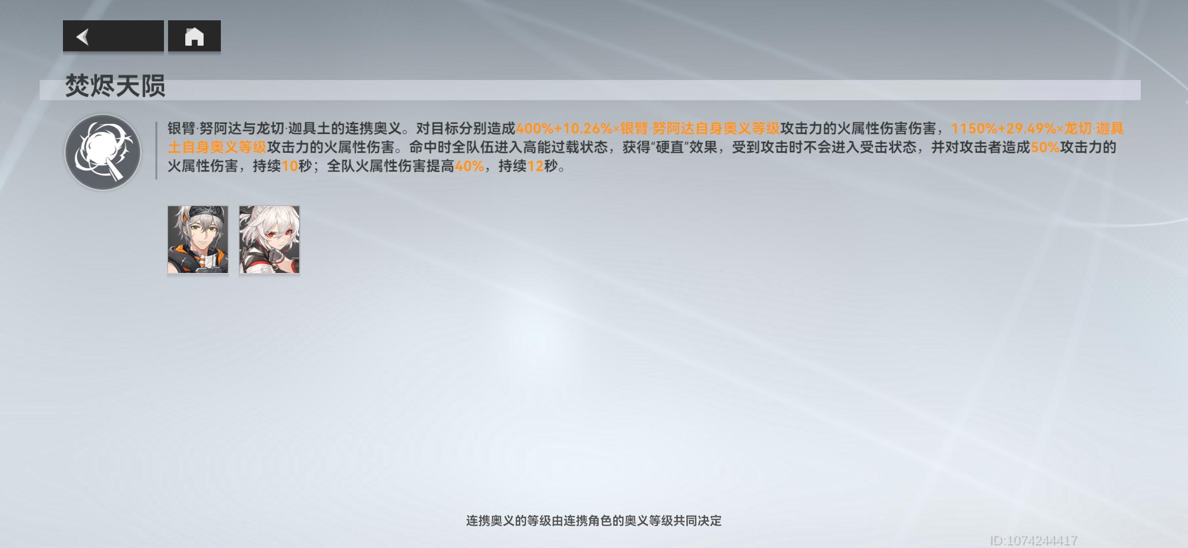 注意最后一条,全队火属性伤害提高40%,持续十二秒。在看看障月的大招,还是上图