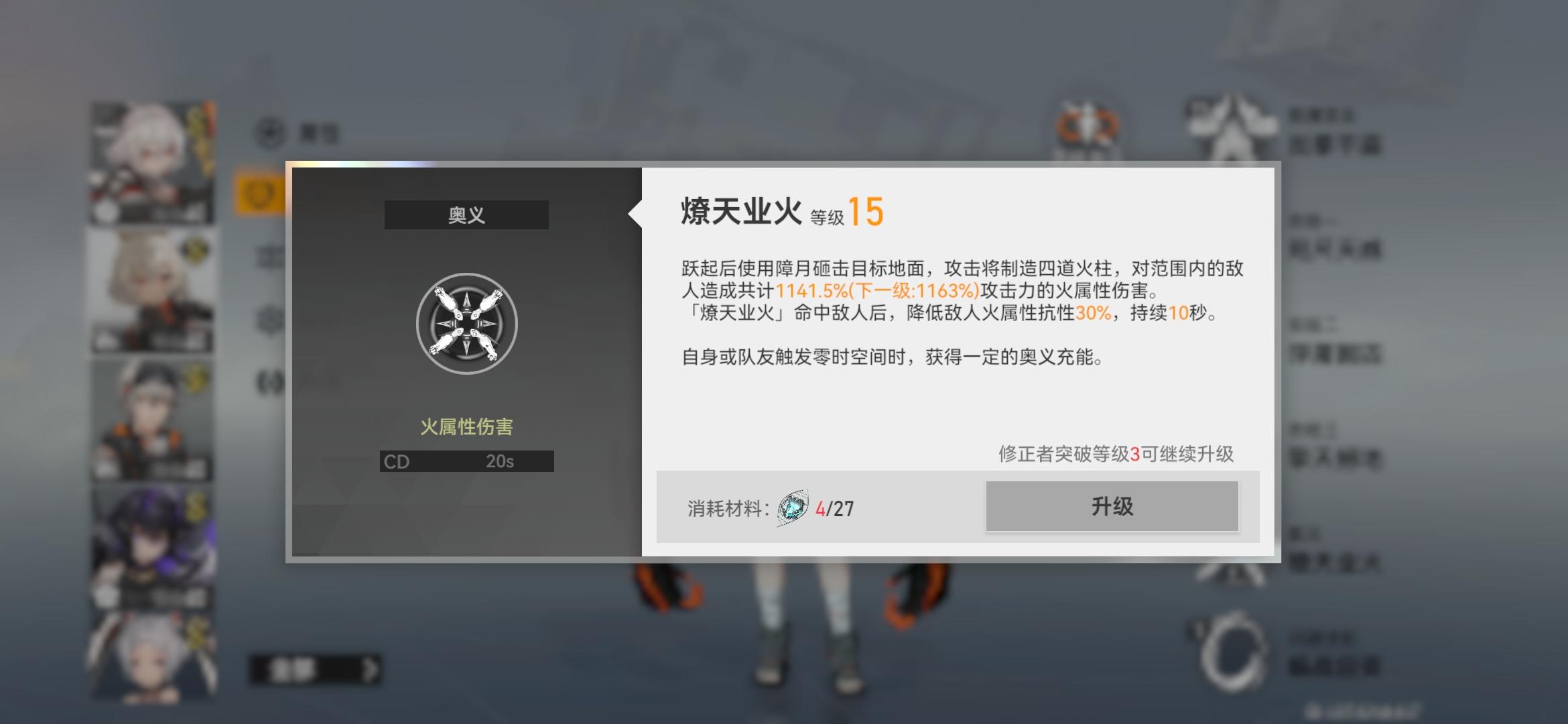 最后一条,命中敌人后,降低敌人火属性抗性30%,持续十秒,加上障月本身就有极为出色的减火抗,自己用的实际感受就是——大招期间的伤害直接爆炸。我打到第七章,第八章卡等级,挑战副本关卡全部打完,没有boss能够撑到第二轮大招的,基本上两个大招加后续输出,三四十管血不是问题,这还是我刻印没有刷的情况。