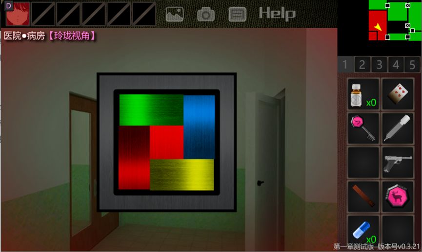 触发剧情。此剧情给出了4个E的提示,应当记录下来它们的颜色和位置(线索固定)。